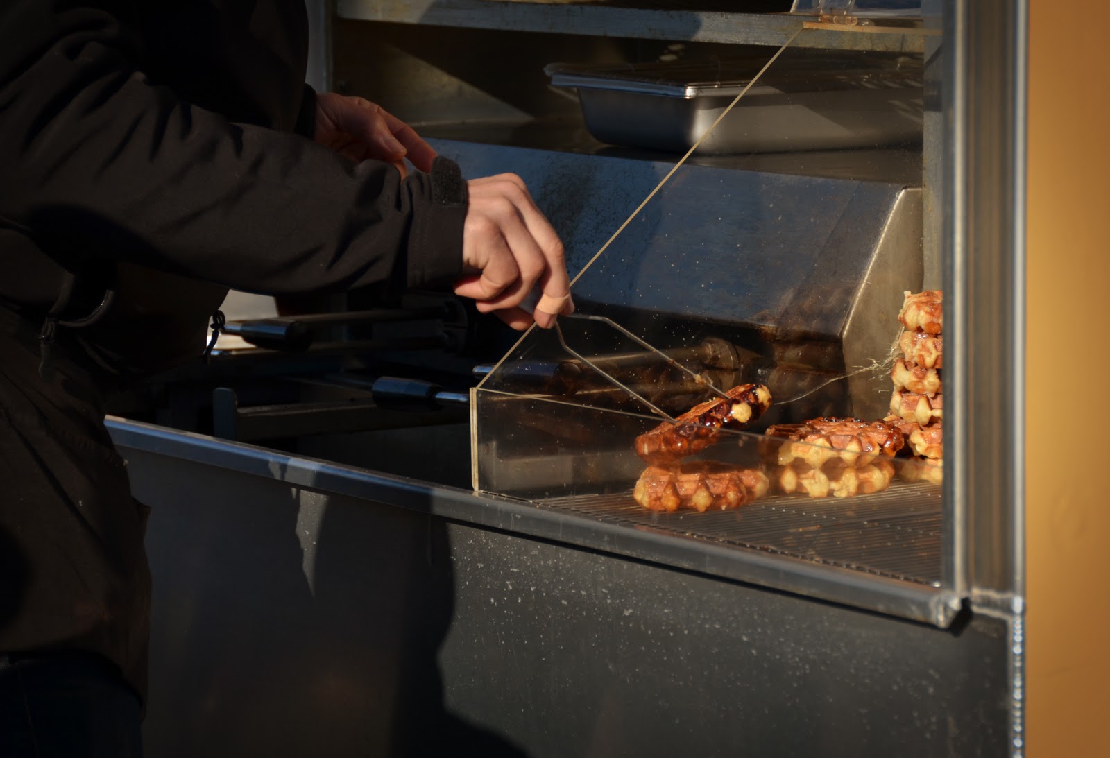 The sweet smell of cooking waffles from the Wanna Wafle stand filled the finish area.